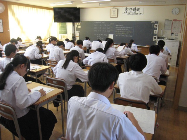 10月1日(水) 3年生 中間考査1日目 公開日 2025/10/01 更新日 2025/10/01 3年生 本日の3学年の中間考査は、入試を意識して各教室に試験監督者が常駐した状態でテストを行いました。 定期考査は、今学期の成績を決める大切なテストです。さらには、受験校へ送付する成績を決める1つの大きな材料にもなります。 これまでの学習の成果を存分に発揮できるように、家庭で振り返りを行い、明日に臨みましょう! がんばれ!3年生!! +5