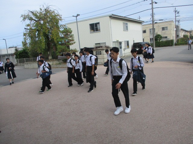 今朝の登校時は曇りになりました。今日から放課後の合唱練習が始まります。本日の下校完了時間は16:45です。