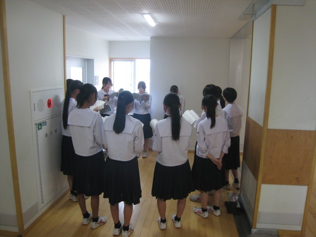 合唱コンクールに向けて、今日から放課後練習が始まりました。廊下でのパート練習、全体で合わせる、教室での話し合いなど、初日から一生懸命取り組みました。