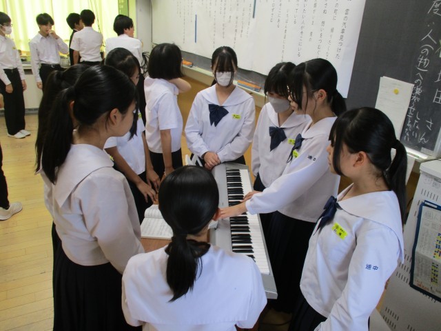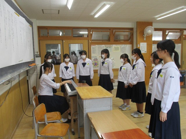 2年生の合唱練習初日は、廊下や教室で各パートに分かれて音取りを中心にしていました。