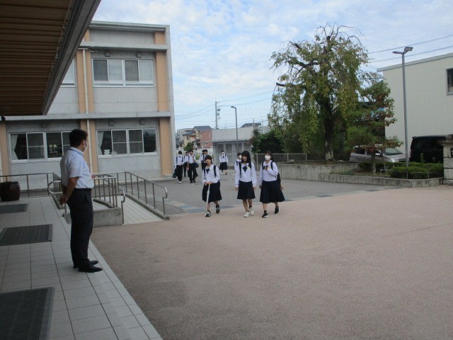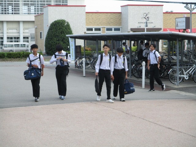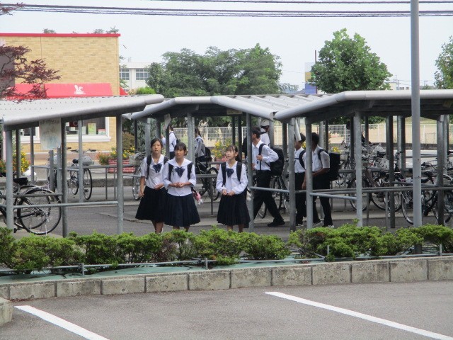 今朝の登校時は晴れになりました。今日は2年生が5、6限に「性に関する講演会」を実施します。本日の下校完了時間は17:35です。