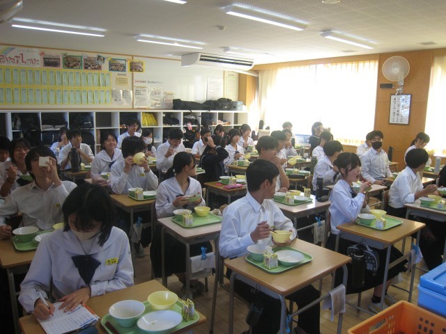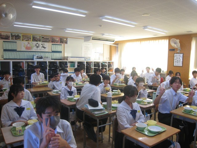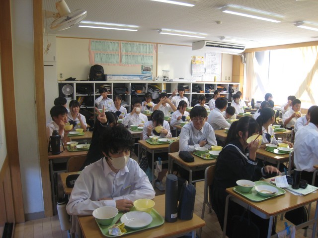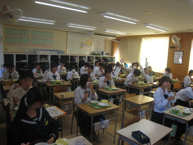 今日はししゃものから揚げ、みそけんちん汁等、和食が中心の献立でした。2年生はおいしそうにもりもりと給食を食べています。