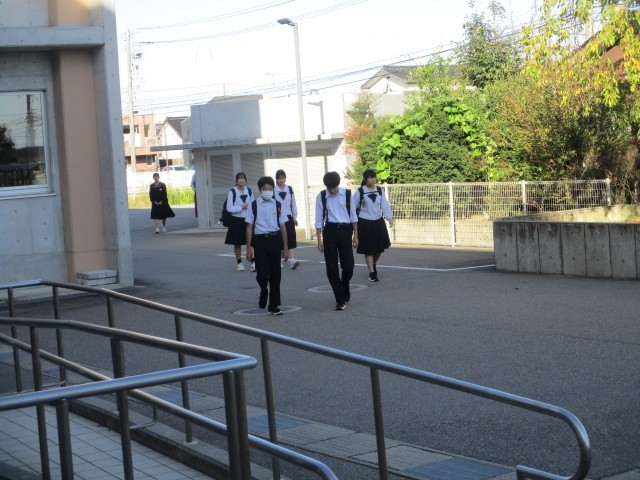 今朝の登校時は晴れになりました。今日は富山市中学校新人大会が行われます。登校している生徒の下校完了時間は1・2年生は10:55、3年生は11:45です。