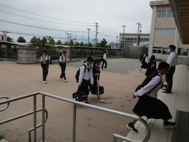 今朝の登校時は曇りになりました。本日の下校完了時間は17:25です。