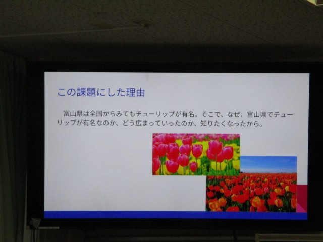 10月14日(火) 1年生 総合的な学習の時間 発表会 公開日 2025/10/14 更新日 2025/10/14 1年生 総合の学習テーマ『発見!富山の魅力』について、各自が調べた内容の発表を行いました。メモを取りながら、しっかりと話を聞いていました。それぞれの発表の最後には質問タイムが設けられ、発表内容に対する質問もありました。 +5
