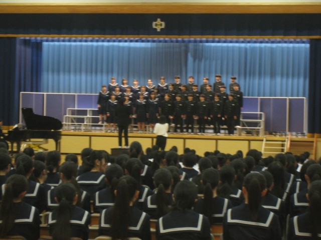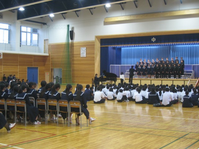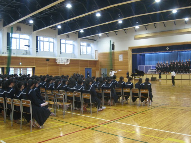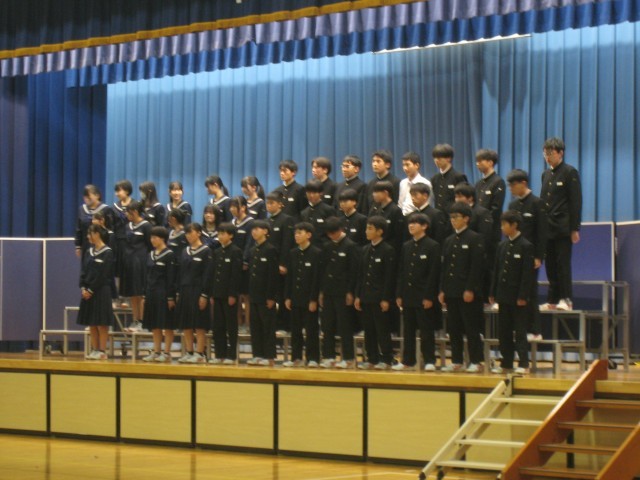 5限目、3年生は合唱コンクールのリハーサルを行いました。立ち位置や流れの確認をしたあと、各クラスが練習の成果を披露し合いました。どのクラスも真剣に歌っていました。本番が楽しみです。終わった後、ある生徒が「今日は今までで最高の出来でした。本番も頑張ります。」とうれしそうに話してくれたのが印象的でした。