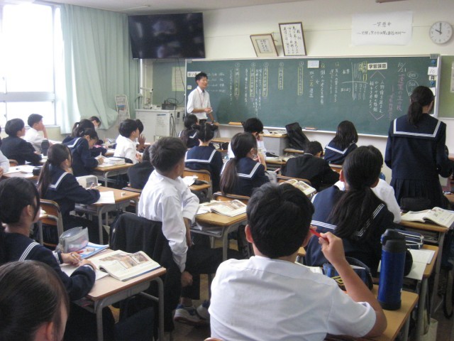 10月21日(火) 1年生 授業風景 公開日 2025/10/21 更新日 2025/10/21 1年生 本日の1年生の2限目の授業の様子です。 1年生は、7組の保健体育以外は全てのクラスが、教室で5教科の授業でした。 さらには、1・2組は数学、3・4組は英語と、ちょっと変わった時間割でした。 写真は、上から1組数学、2組数学、3組英語、4組英語、5組国語、6組社会、7組保健体育の授業の様子です。 +4