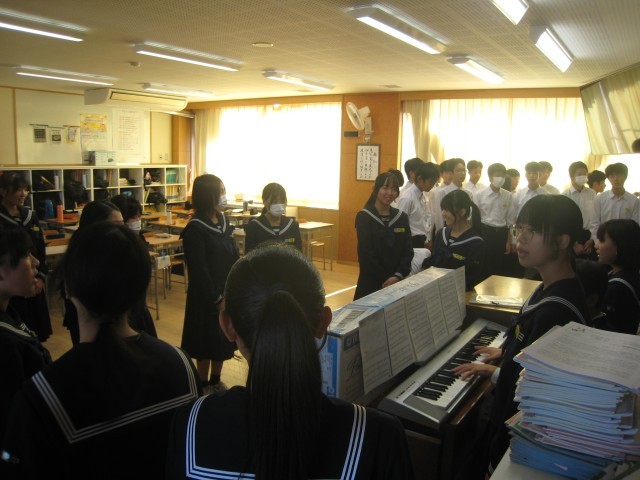明日の合唱コンクール本番へ向け、合唱前日練習に励んでいます。