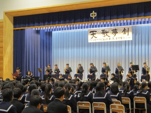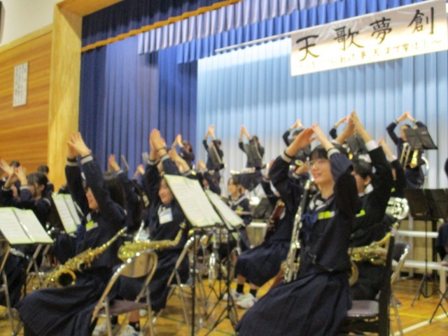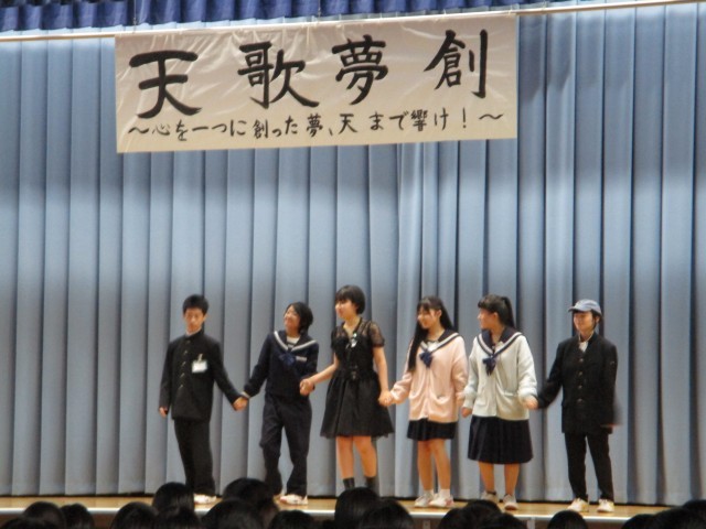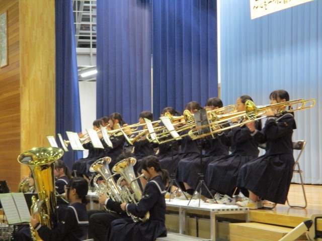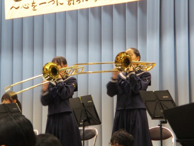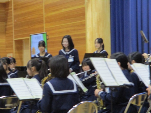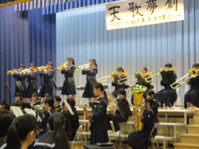 学習発表会のスタートはステージ発表でした。吹奏楽部の発表では、1年生も各楽器のパートの大切なメンバーとなり、楽しそうに演奏をしていました。続く合唱部の合唱にも、1年生が参加しており、素敵なハーモニーを響かせていました。演劇部の発表では、照明や音響担当として活躍していました。