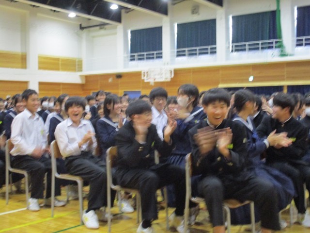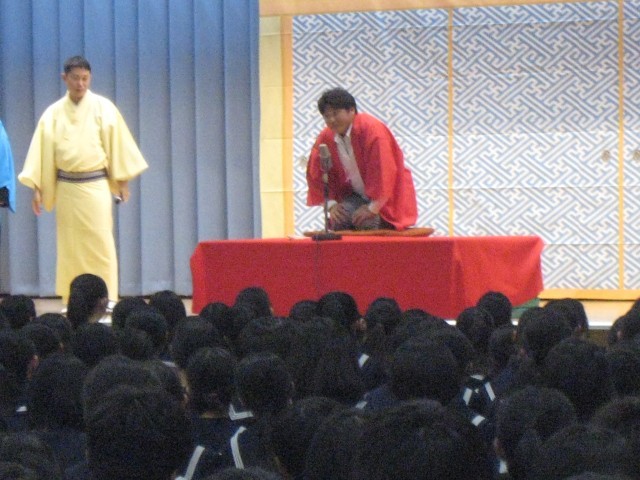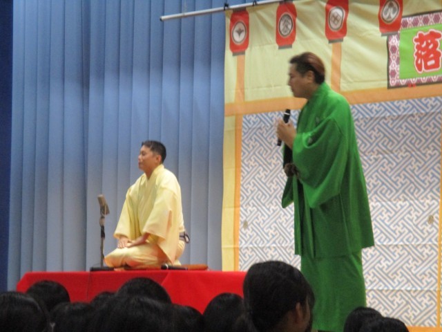 普段なかなか触れることのできない、日本文化の「落語」に触れ、全校で笑い、和やかなひと時を過ごしました。
