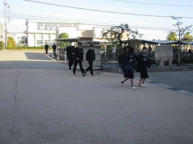 今朝の登校時は晴れになりました。今日は合唱コンクールを行います。本日の下校完了時間は16:30です。