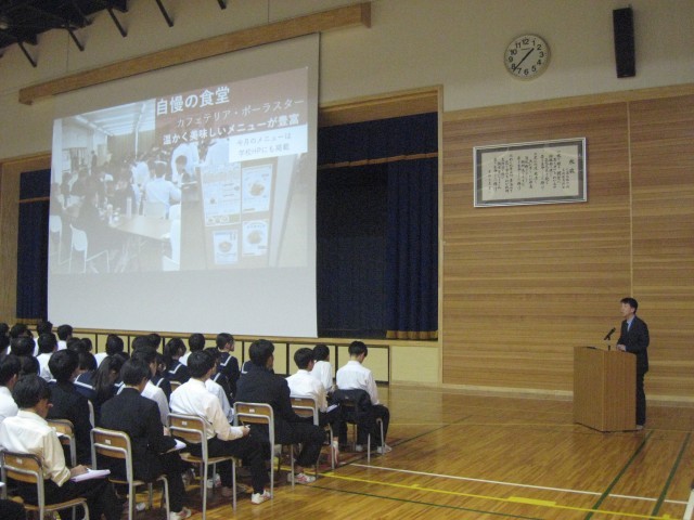 富山高校、八尾高校、富山工業高校、富山商業高校、富山いずみ高校の5校を招き、説明していただきました。どんな学習をしているか。どんな資格が取れるのか。進学先や就職先としてどんなところがあるのか。たくさんの話を聞き、今後の進路選考の参考になりました。