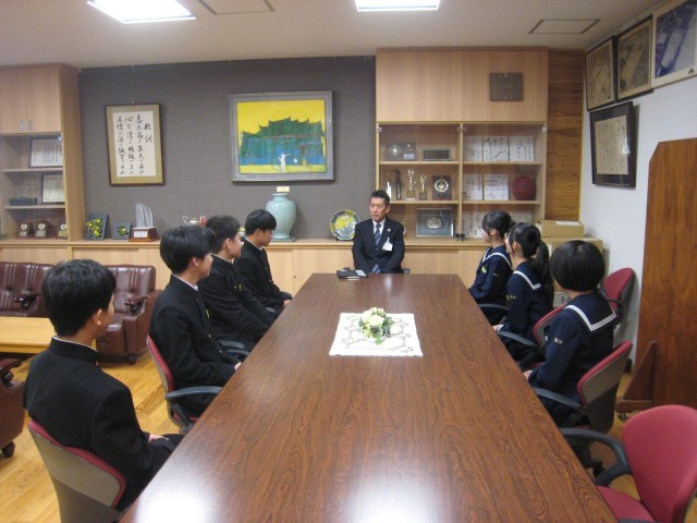 本日の生徒総会を終え、放課後校長室で、令和7年度後期生徒会執行部激励会を行いました。