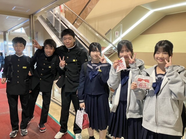 コロッケを食べたり、海鮮丼を食べたりしている班もあります。