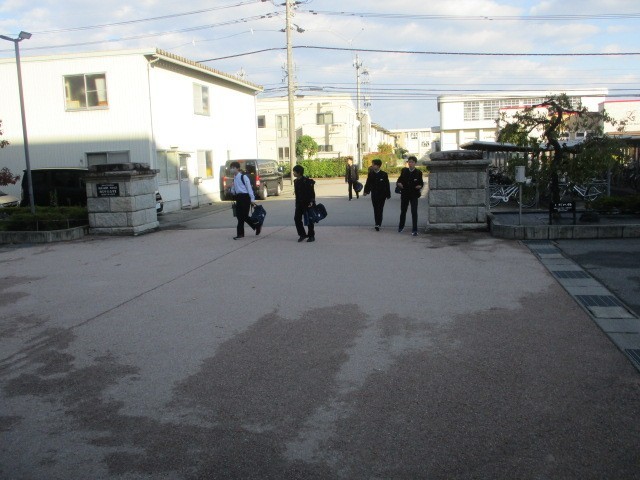 今朝の登校時は晴れになりました。今日は2年生が金沢校外学習を行います。本日の下校完了時間は2年生を除いて15:55です。