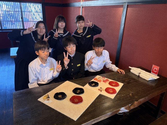 金箔を貼った皿が完成しました。それぞれの個性あふれる作品になりました。