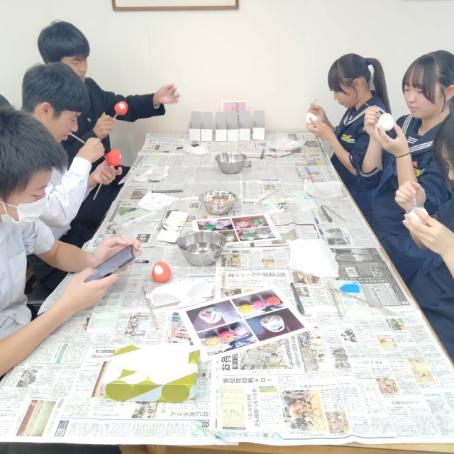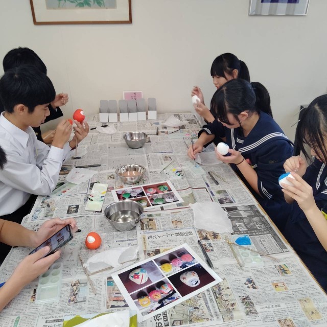 起き上がり手描き体験です。個性豊かな絵付けをしています。