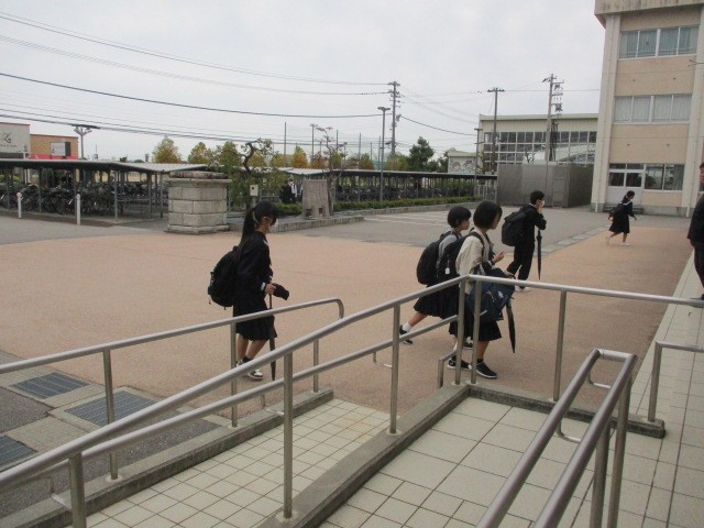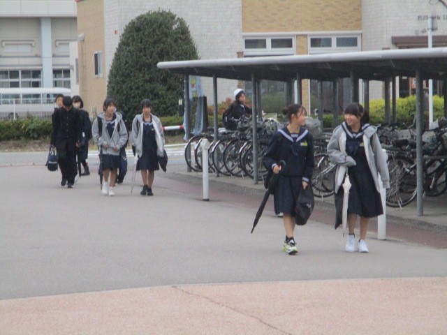 今朝の登校時は曇りになりました。本日の下校完了時間は16:25です。