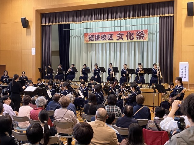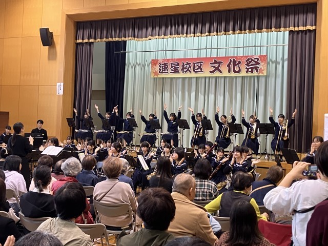 速星公民館で行われた文化祭には、美術作品、書道作品の展示のほか、吹奏楽部が演奏を披露しました。地域の皆さんに盛大な拍手をいただきました。