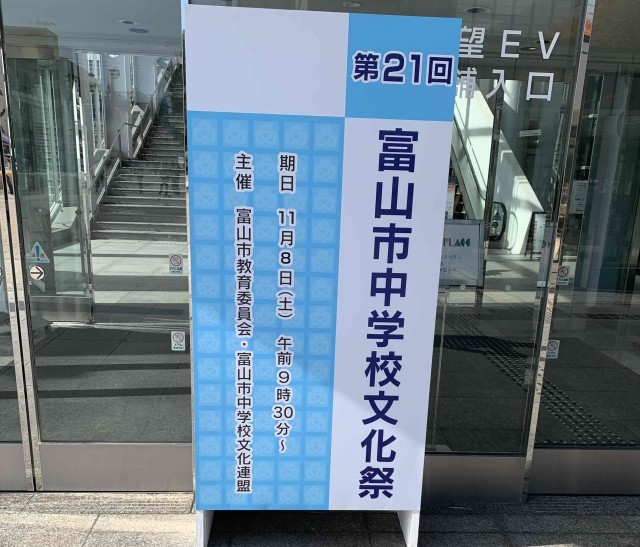 本校からは、音楽発表(吹奏楽部の演奏)、お茶席、富山市科学展覧会優秀作品展示、美術作品、手芸作品、書道作品を発表・出品しました。