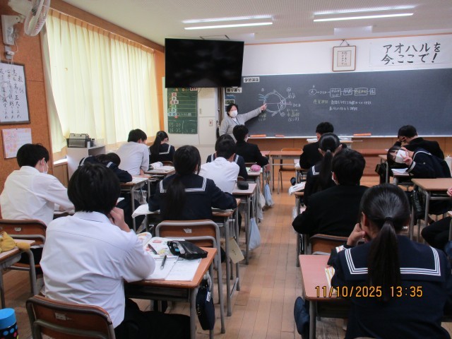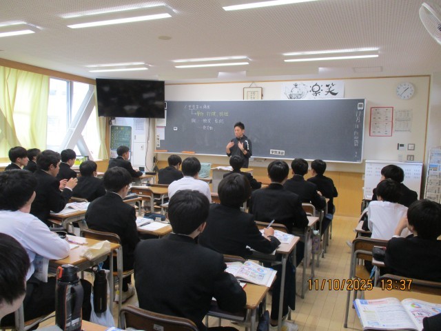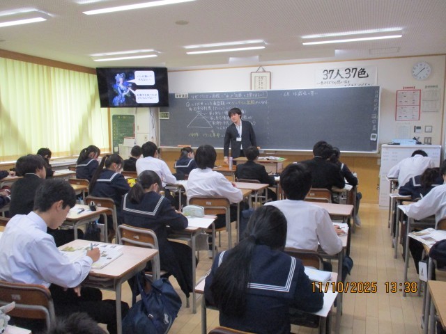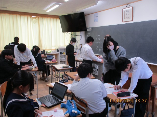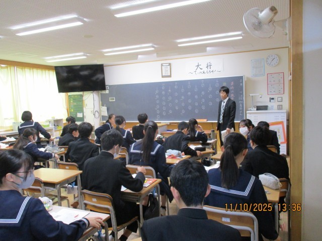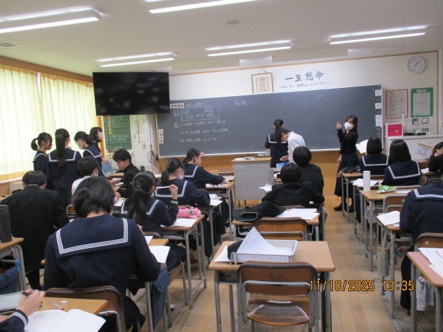 2年生5限の授業風景です。中教研テストの返却が始まっています。特に間違ったところの解説など、真剣に聞いています。