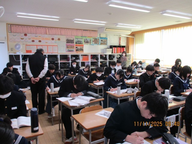 理科は仕事エネルギー、数学は証明問題等、どの授業も集中して授業に取り組んでいます。