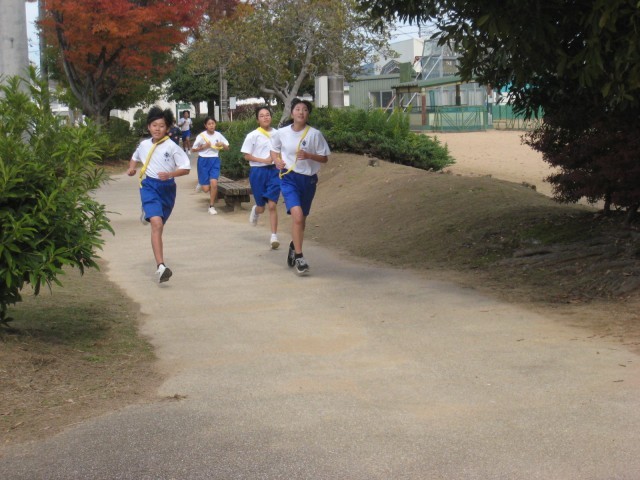 また、1年4組の保健体育では、駅伝形式で中長距離走に取り組んでいました。