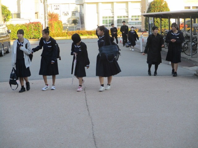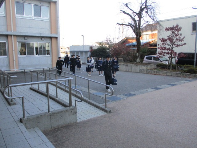 今朝の登校時は晴れになりました。今日から3年生の進路懇談会が始まります。本日の下校完了時間は16:25です。