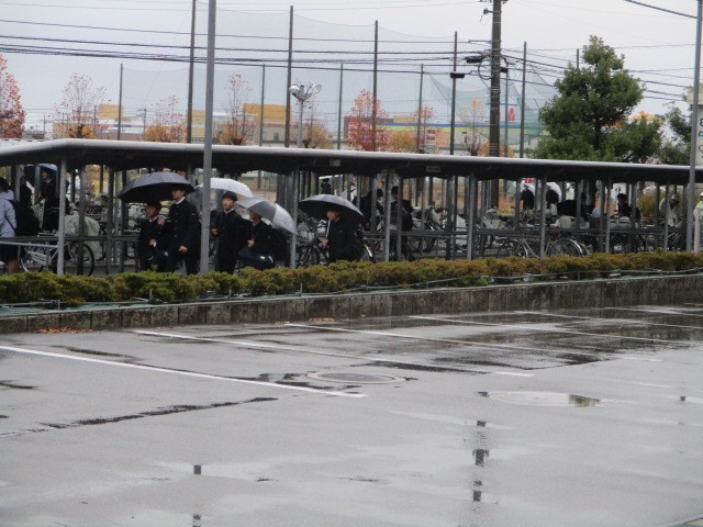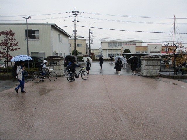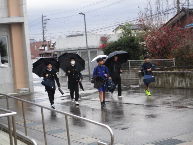 今朝の登校時は雨になりました。今日は3年生の進路懇談会2日目です。本日の下校完了時間は16:30です。