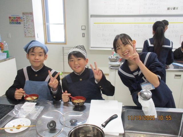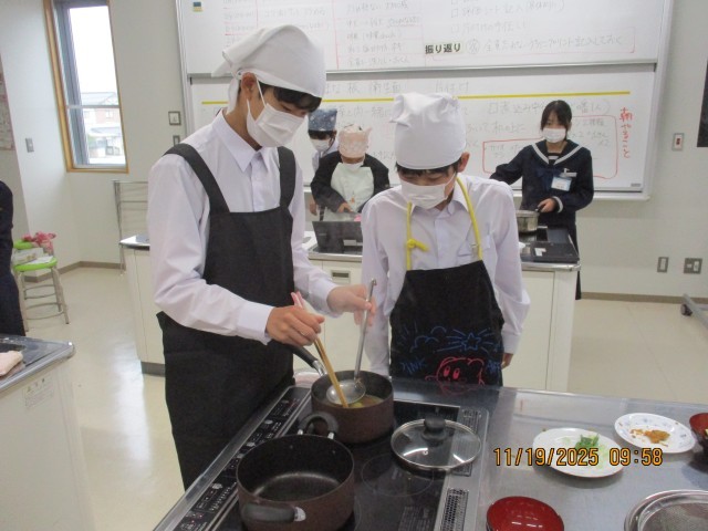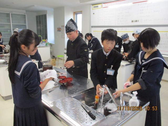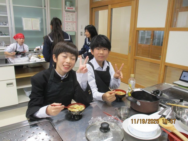 今日は3組、7組の男子が調理実習を行いました。3組は男女の協力体制が抜群でした。7組男子は、朝の準備から調理もやる気いっぱいで臨みました。女子のサポートもばっちりでした。