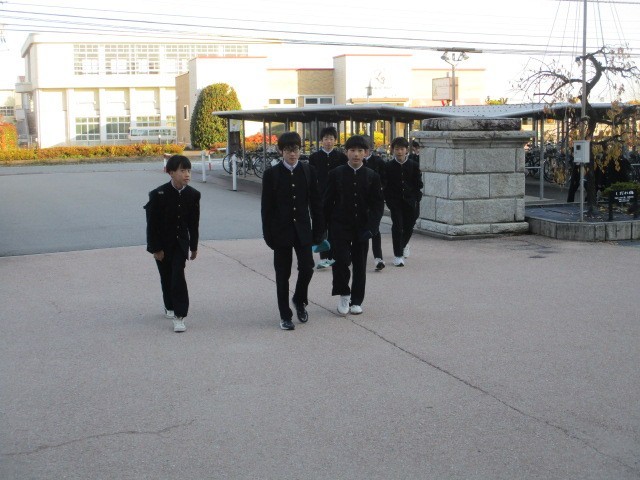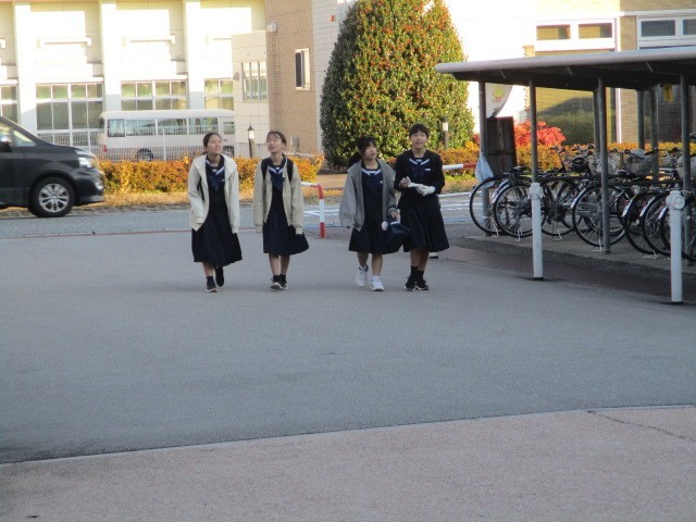 今朝の登校時は晴れになりました。昨日から期末考査期間に入り、部活動はありません。本日の下校完了時間は15:35です。