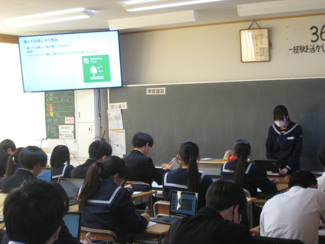 自分が興味を持った17の目標のうちの一つについて調べ、気づいたこと、これから実践しようと思うことなど、丁寧に発表しました。