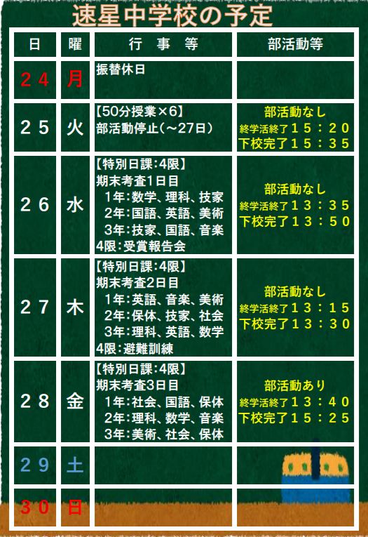 11月24日(月)からの予定