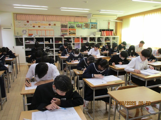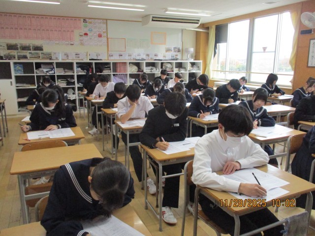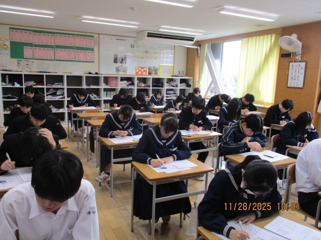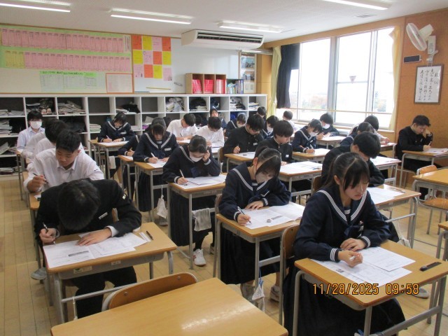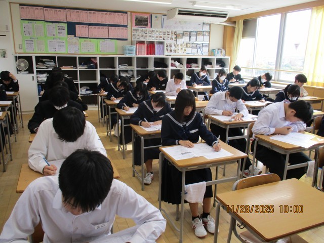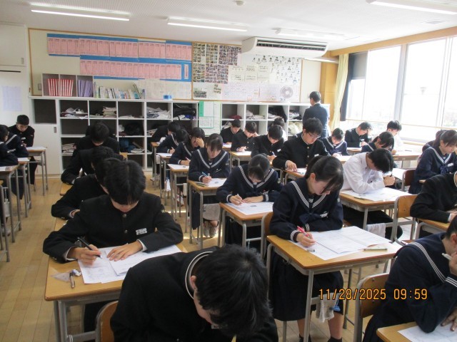 本日、2学期末考査3日目です。最終日もほどよい緊張感の中、一生懸命テストに向かっています。