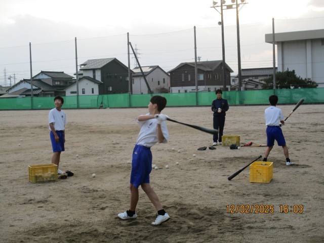 3枚目:野球部は、バッティング練習に力を入れています。