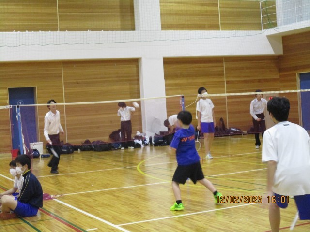 5枚目:バドミントン部は試合形式の打ち合いをしています。