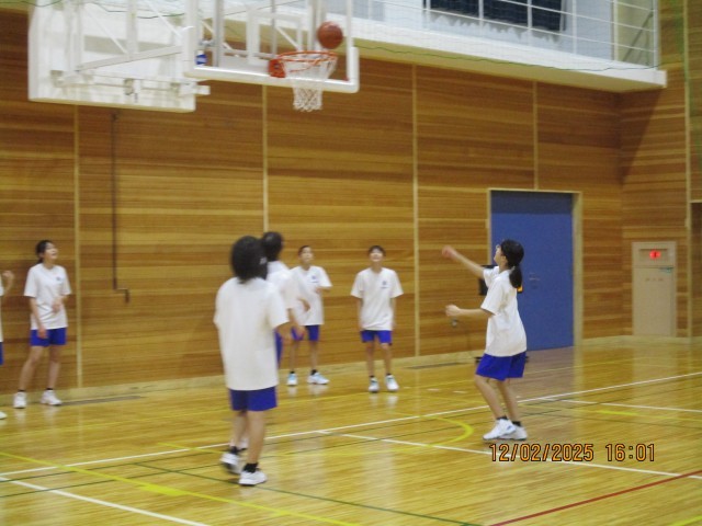 6枚目:バスケットボール部はパスからのシュート練習です。