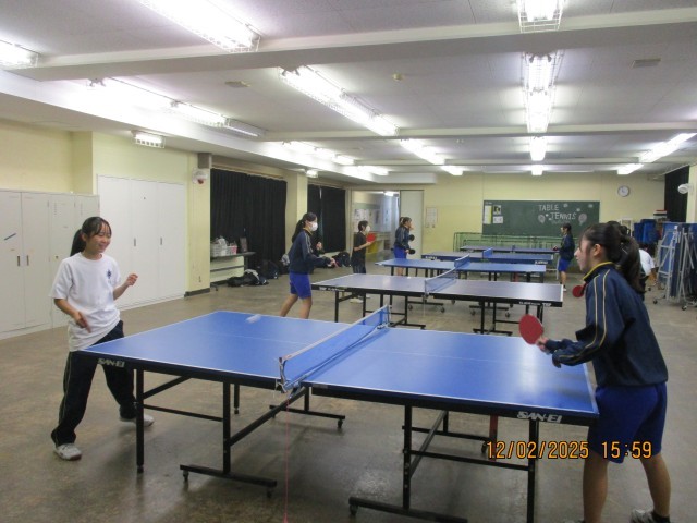7枚目:卓球部は真剣な表情で打ち合いをしています。