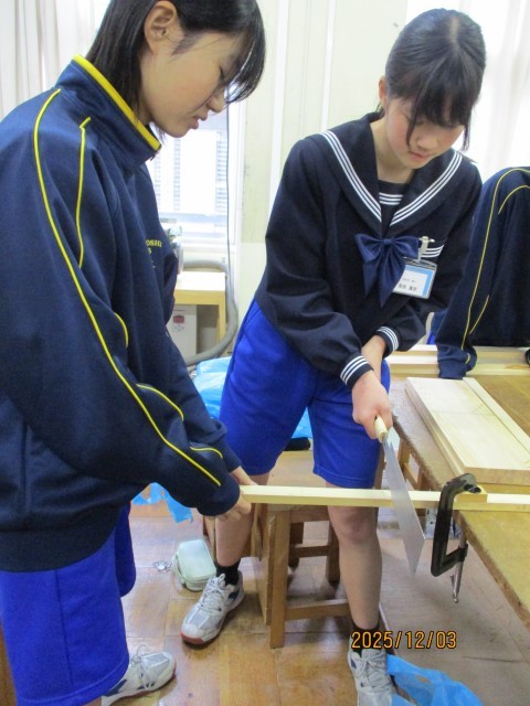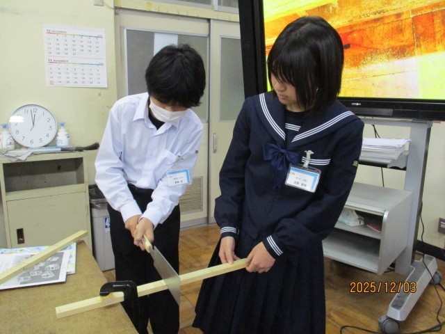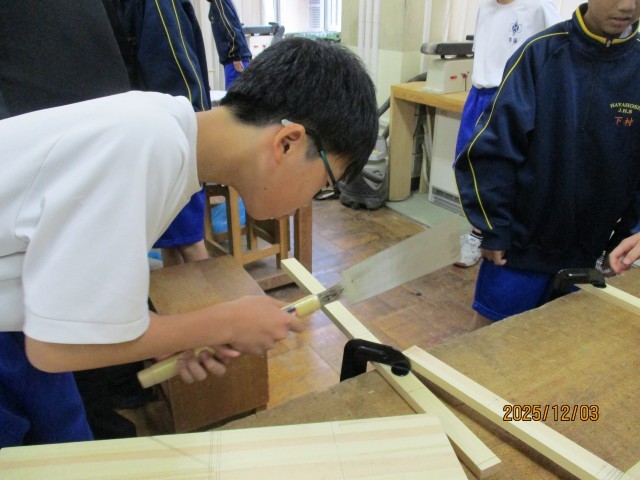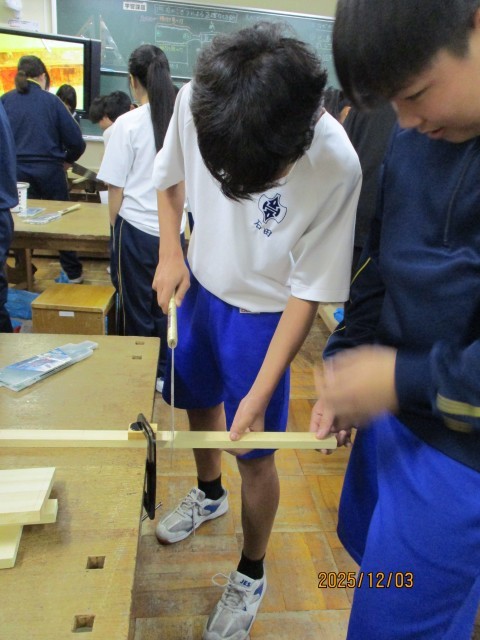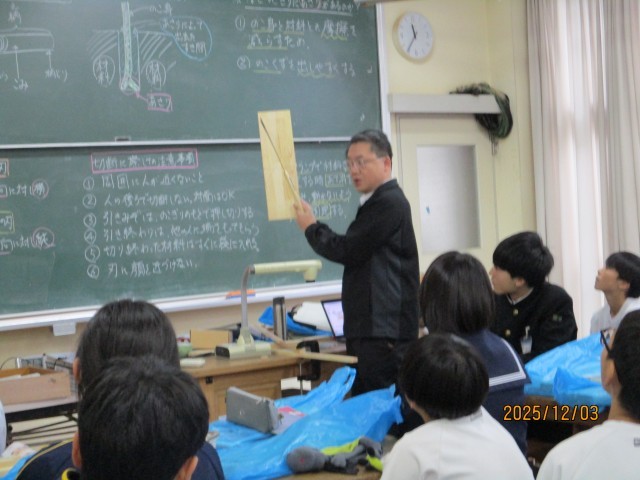 12月3日(水)1年生:技術科(のこぎりの授業)