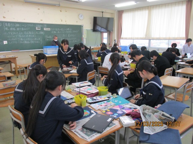 写真は、上から1組数学、2組英語、3組保体、4組国語、5組保体、6組理科、7組美術、8組社会の授業の様子です。