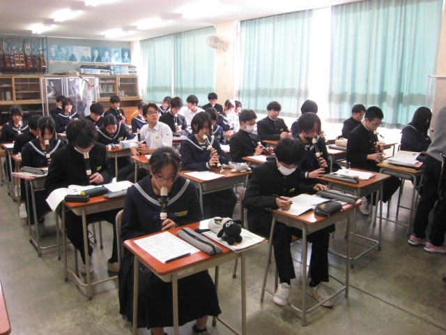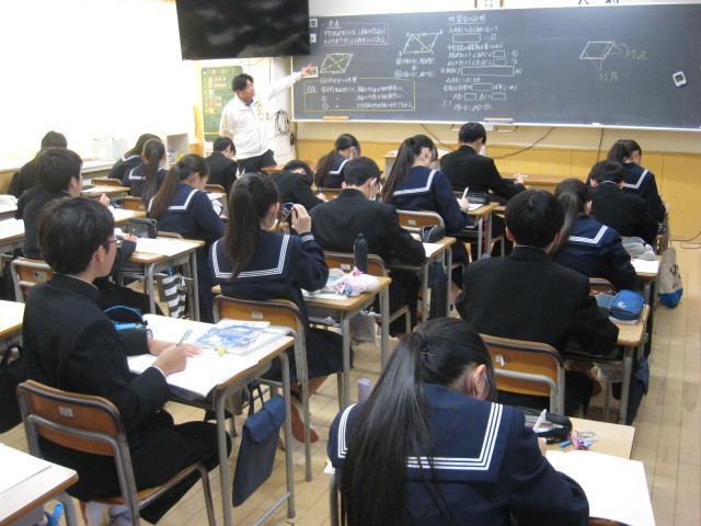 写真は、上から1組英語、2組理科、3組数学、4組美術、5組英語、6組数学、7組国語、8組音楽の授業の様子です。