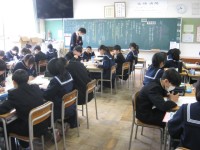 理科室清掃では、雪が降る寒い日でしたが、各テーブルの洗面所を丁寧に磨いていました。木工室清掃では、のこぎりを使った授業があり、たくさんの木くずがありましたが、隅々まで掃き掃除をしていました。清掃終了時には、班員全員がそろって、終了のあいさつを行っています。
