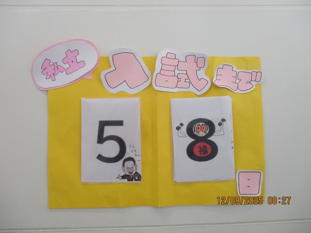 3年生の階段の踊り場には、カウントダウンカレンダーがお目見えしました。卒業式まで100日を切っているのですね。1日1日を大切にしていきたいですね。