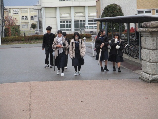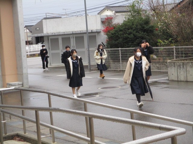 今朝の登校時は曇りになりました。本日の下校完了時間は14:40です。