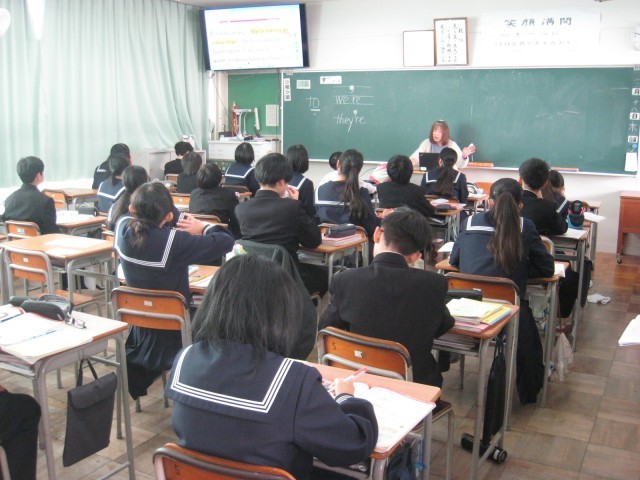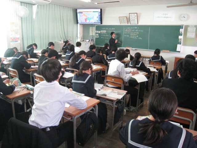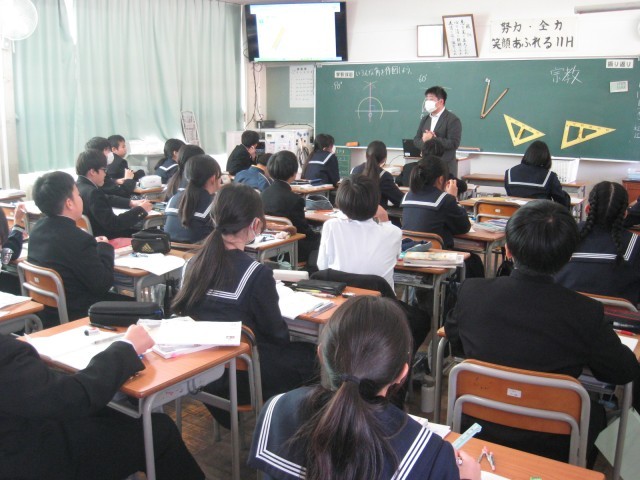 写真は、上から1組数学、2組美術、3組技術、4組国語、5組社会、6組保健体育、7組英語の授業の様子です。