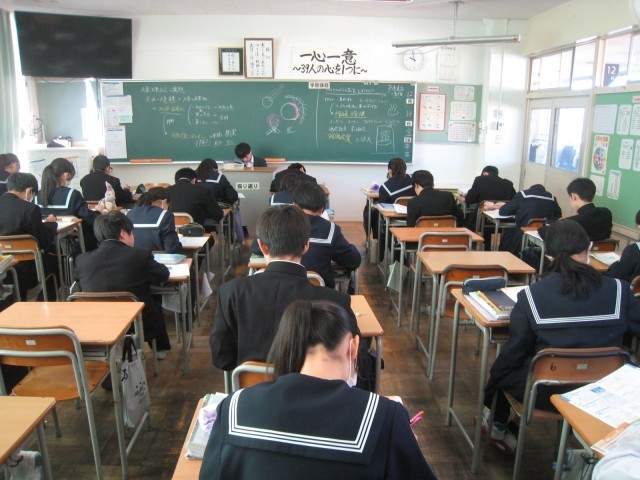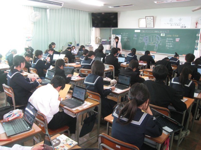 写真は、上から1組社会、2組社会、3組美術、4組国語、5組数学、6組家庭科、7組体育