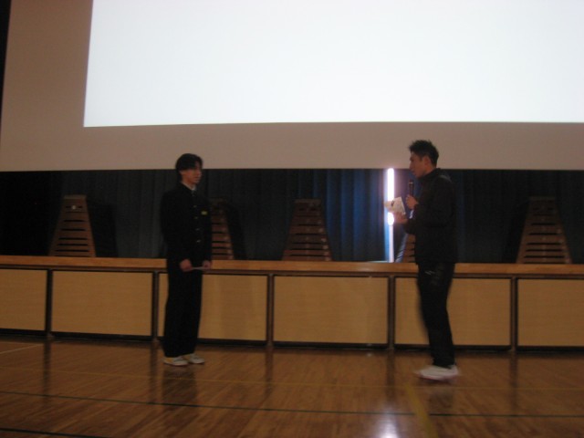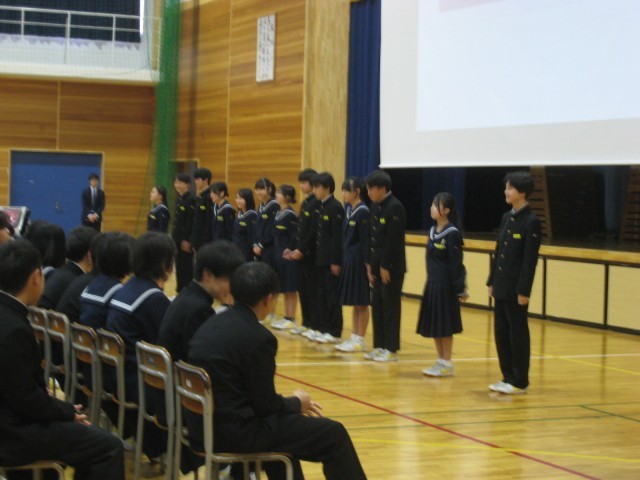 新しく決まった、校歌の指揮者・伴奏者、校訓唱和リーダー、応援団の発表がありました。