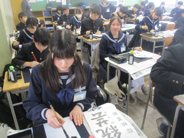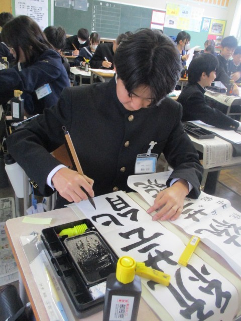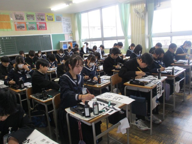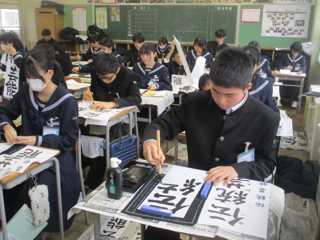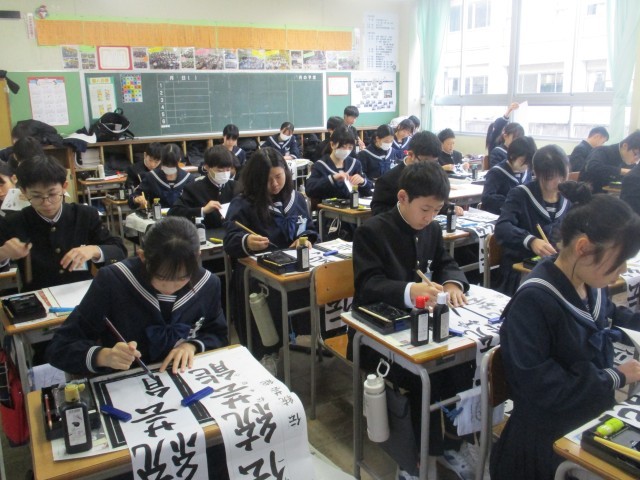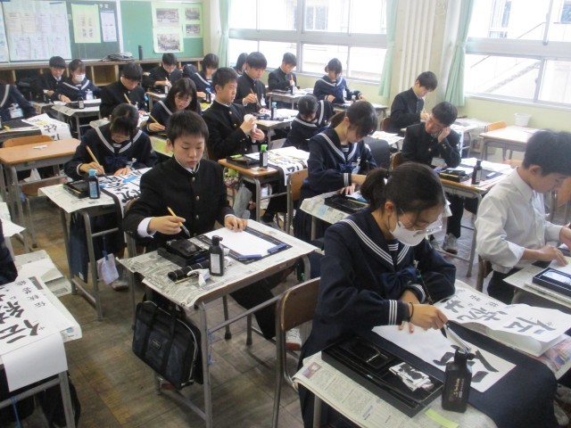3学期の始業式に続いて書初大会が行われました。どの生徒も、真剣に取り組んでいます。