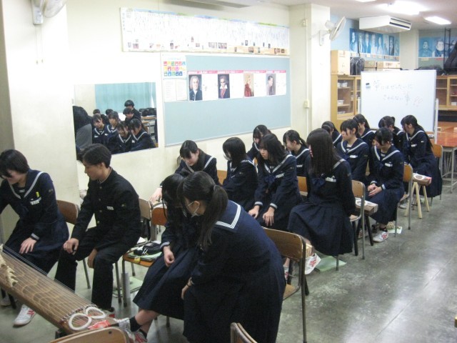 1月15日(木) 3年生 授業風景 公開日 2026/01/15 更新日 2026/01/15 3年生 本日の3年生の5限目の授業の様子です。 3年生の音楽では箏の演奏練習をしています。 貴重な体験で、しっかりと演奏できるように頑張っています。 写真は、上から1組数学、2組理科、3組社会、4組数学、5組理科、6組英語、7組音楽、8組美術の授業の様子です。 +6