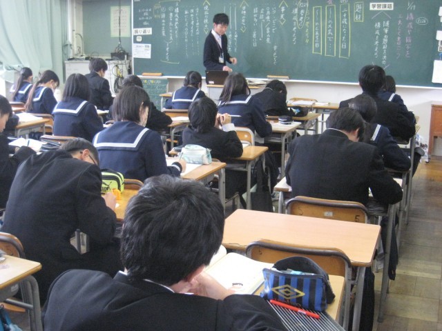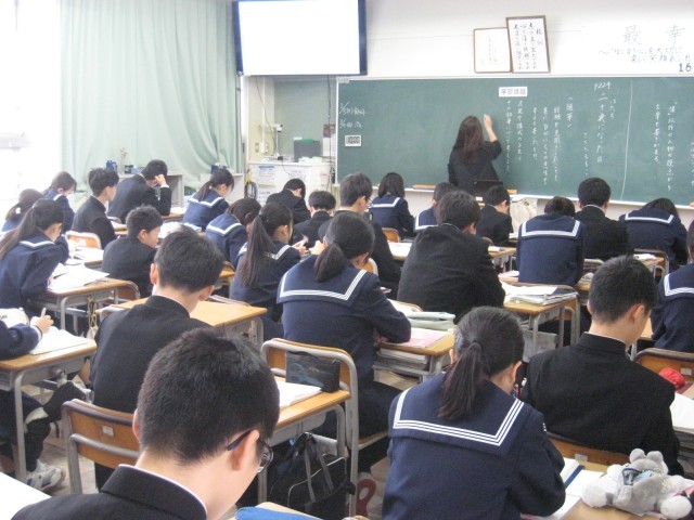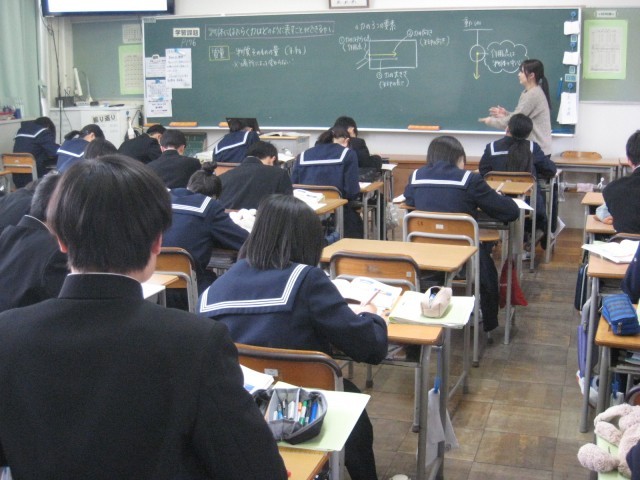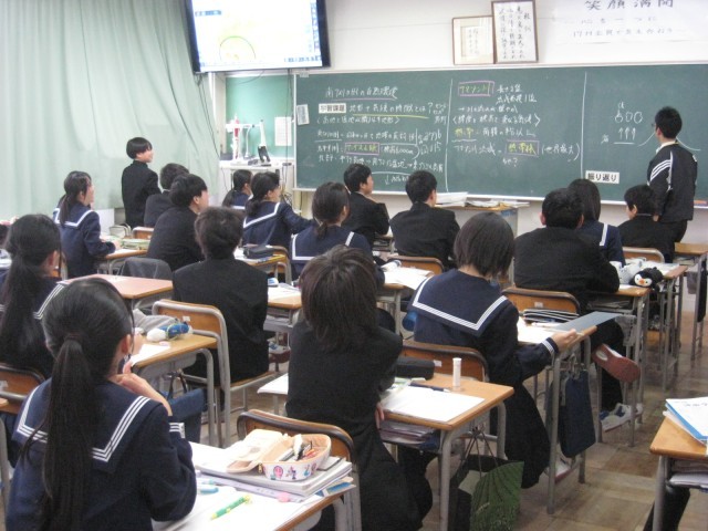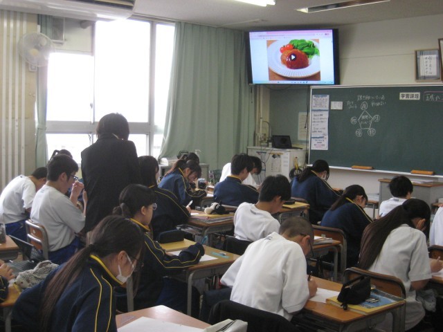 写真は、上から1組技術、2組家庭科、3組保健体育、4組理科、5組国語、6組国語、7組社会の授業の様子です。